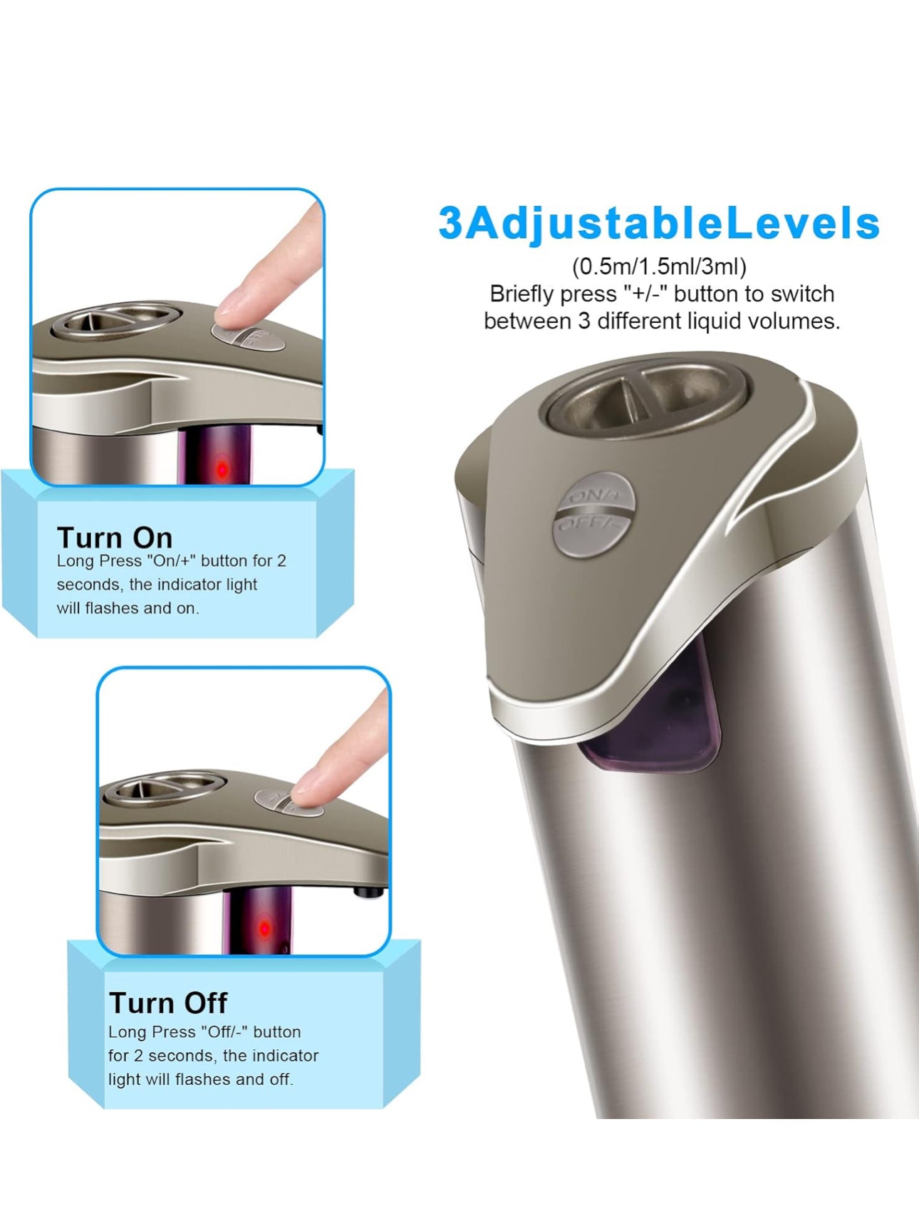 Answer 3: Absolutely! The dispenser features three adjustable dispensing levels, allowing you to customize the amount of soap or sanitizer that is released. This is perfect for users of all ages, from a small drop for kids to a full pump for adults.